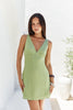 Dusk Dream Mini Dress Green a fresh and effortless mini dress designed for sun-drenched days and warm summer nights. Crafted in a soft green hue, this dress features a flattering V-neckline, delicate bust ruching, and a figure-skimming silhouette that flows with every step. The lightweight, breathable fabric makes it the perfect choice for brunch by the coast or a sunset stroll through whitewashed streets.