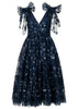 End the year as the star of the night in the Rhea Dress, a breathtaking gown designed for unforgettable moments. Its deep navy hue is embellished with shimmering floral details, while the delicate bow-tied shoulders add a touch of romance. The flowing 3-tiered skirt and fitted bodice create a timeless silhouette, perfect for NYE, weddings, and beyond. Pair with silver accessories for a bold entrance!