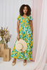 Feel summery and comfortable in this beautiful dress. It has a v-neck and cap sleeves - plus it's made from 100% viscose so you'll stay cool on a warm day. It has a shirred tummy-flattering panel as well as pleats for a feminine silhouette. Style with sandals in the sun or go for a formal look with your favourite heels and a clutch bag.