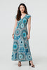 Mosaic Print Cap Sleeve Empire Maxi Dress