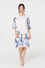 Floral 3/4 Sleeve Layered Hem Midi Dress