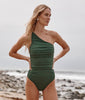 A fresh take on our iconic Sidestroke, this one-shoulder silhouette is reimagined in our ultra-soft DreamDrape™ fabric with flattering ruching throughout the torso. Built-in soft cups offer gentle support, while the sleek asymmetrical neckline brings modern elegance to your summer adventures. Comfortable, sculpting, and endlessly chic — this suit does it all.