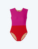 High-neck meets high fashion in this full-coverage, colorblocked beauty.