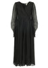 The Eclipse Dress is the epitome of understated elegance and timeless sophistication. Crafted in a flowing black fabric, this dress exudes a sense of mystery and allure, perfect for any evening occasion. The sheer, billowing sleeves and gathered waist create a graceful silhouette that moves beautifully with every step. With its minimalist design and classic charm, the Eclipse Dress is a versatile piece that allows your natural beauty to shine through, making it a must-have for any wardrobe.
